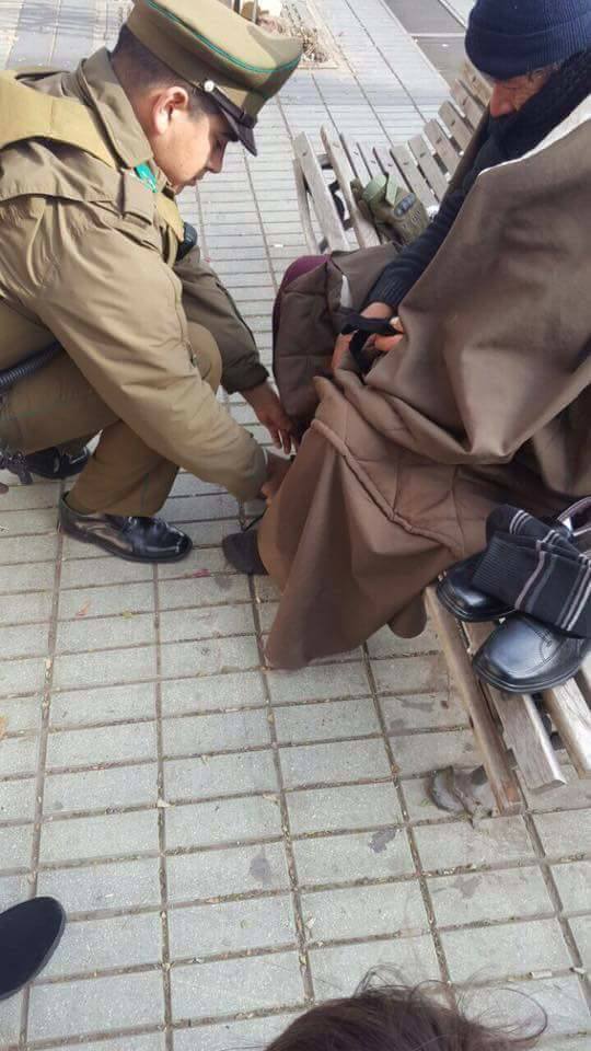 Hace algunos días, cuando las bajas temperaturas alcanzaron cifras bajo cero, carabineros pertenecientes a la 48 Comisaría de la Familia se tomaron las calles del centro de Santiago, yendo en apoyo de las personas que están en situación de calle.