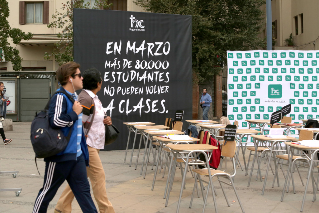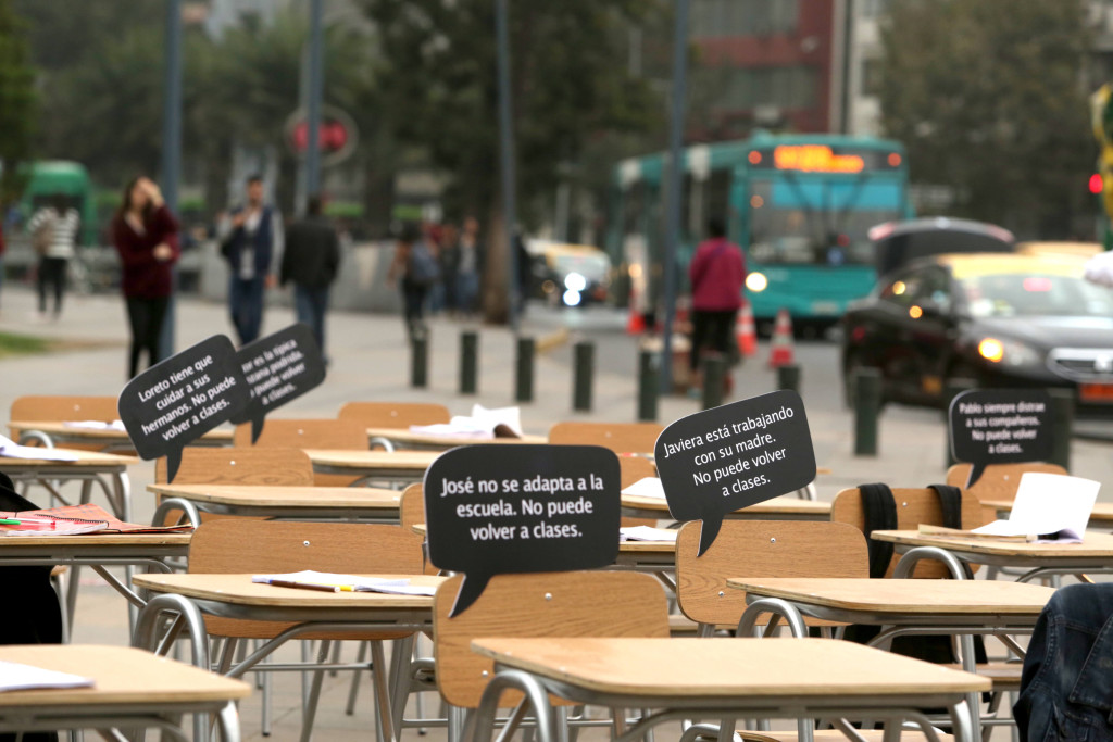 Este viernes, centenares de personas se vieron sorprendidos por una llamativa sala se clases instalada  en medio de la concurrida Plaza Italia.  Nuestro objetivo fue evidenciar que  en el mes de marzo  más de 80 mil niños no vuelven  a clases. Las causas son diversas: problemas económicos; sistemas familiares altamente vulnerables; embarazos adolescentes; el proceso educativo no posee una oferta de educación pública que asegure cobertura nacional para los jóvenes que lo requieran; no existen sistemas integrados de programas especializados que aseguren las herramientas necesarias para la superación de la exclusión del sistema escolar. A lo anterior, se suman los prejuicios presentes en la propia comunidad escolar que terminan excluyendo, y finalmente expulsando, a miles de niños.